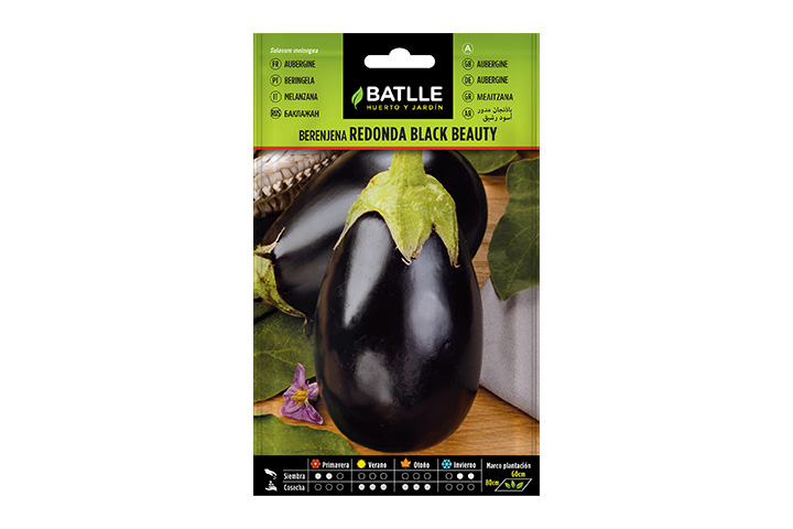 Batlle Berenjena Redonda Black: Berenjena de piel negra brillante, perfecta para guisos y parrilla. Sabor suave y textura esponjosa. Ideal para huertos.